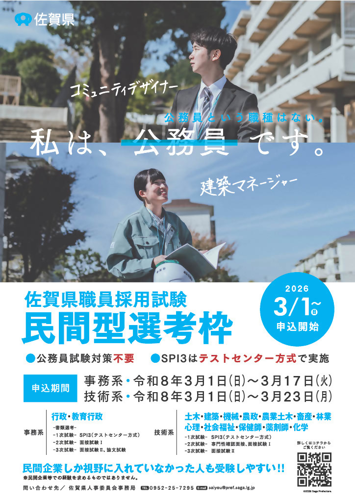 令和8年度佐賀県職員採用試験〔民間型選考枠・スポーツ特別枠〕について試験案内を掲載しました。